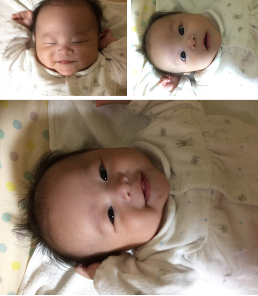 娘です〜。産まれて3ヶ月が経ち、表情が豊かになってきました(^○^)