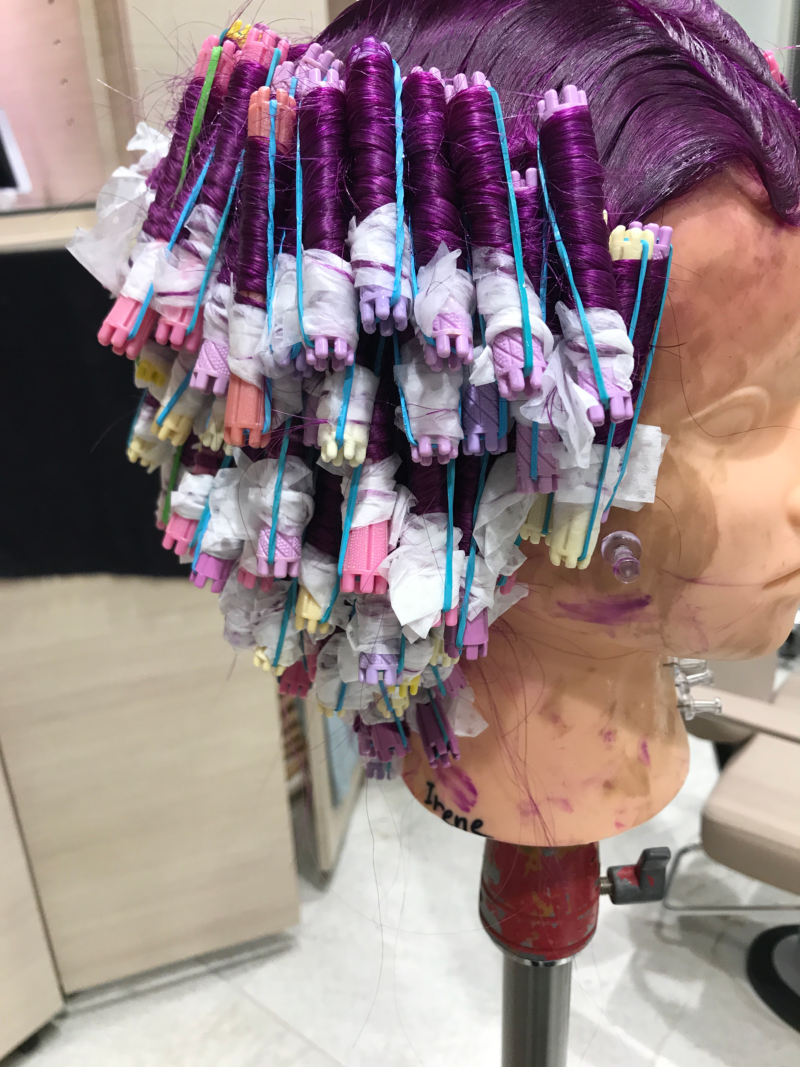 紫に染めてから細かく巻いて仕込み終了してました。